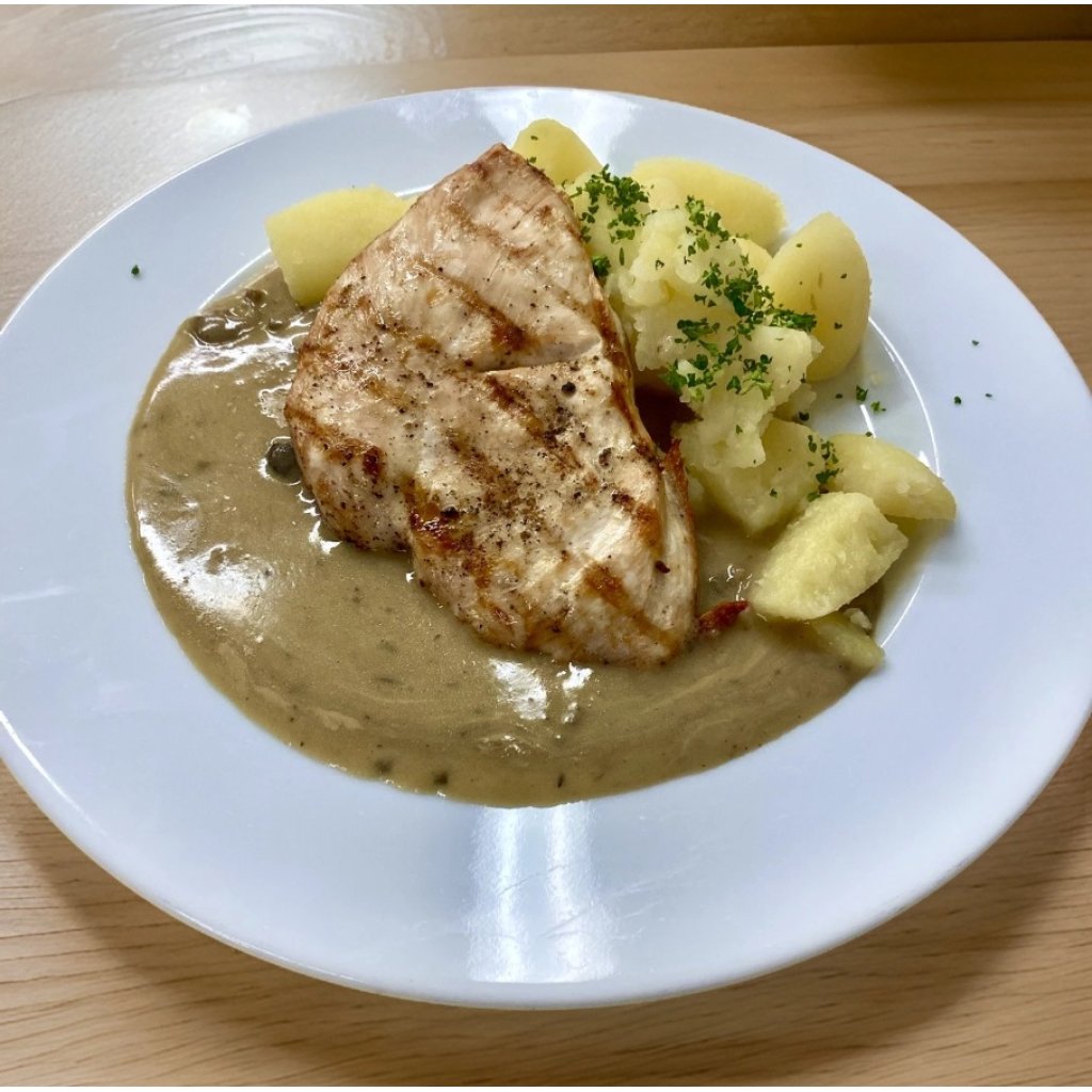 0406 KUŘECÍ STEAK S HŘÍBKOVOU OMÁČKOU 200 g