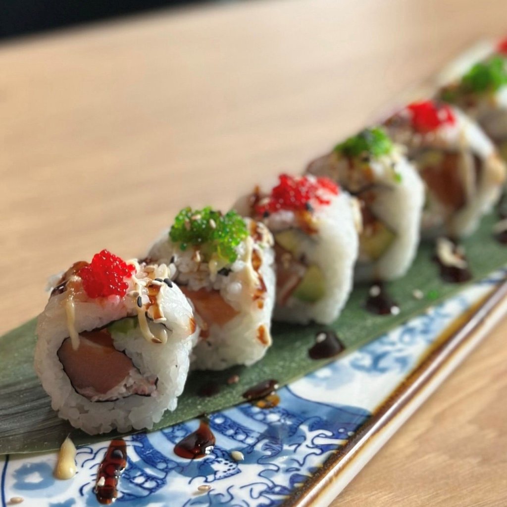 Losos, avokádo, krabí krém, tobiko (kaviár z létajících ryb), unagi omáčka, japonská majonéza - 8 ks