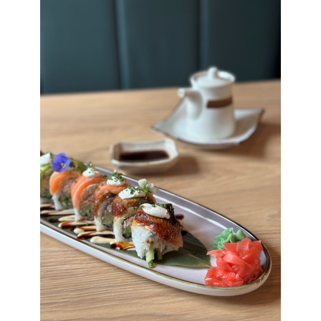 Krabí krém, avokádo,okurka, losos, tuňák, nakládaný úhoř, teriyaki omáčka - 8 ks