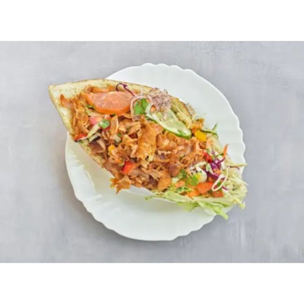 Maso, chléb, ananas, ledový salát, zelí, cibule, dresink.